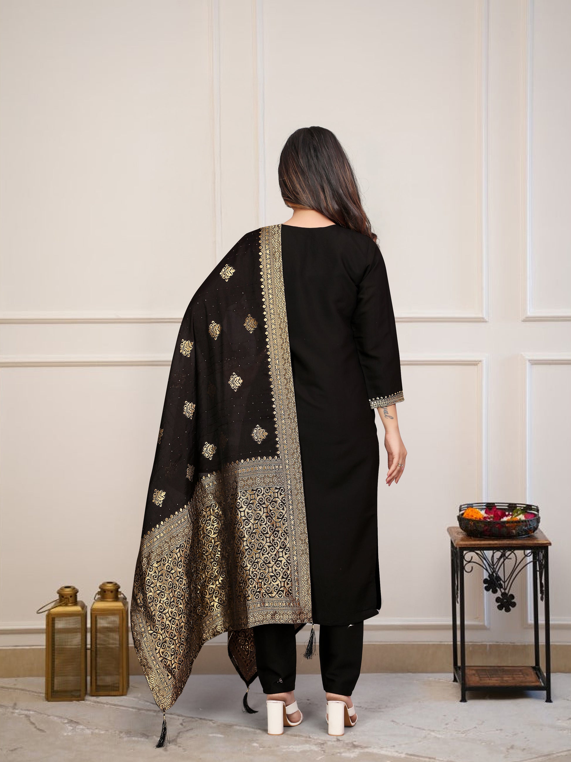 Embrace elegance in this exquisite pink kurti set, featuring intricate embroidery, a luxurious dupatta with gold detailing, and a timeless silhouette