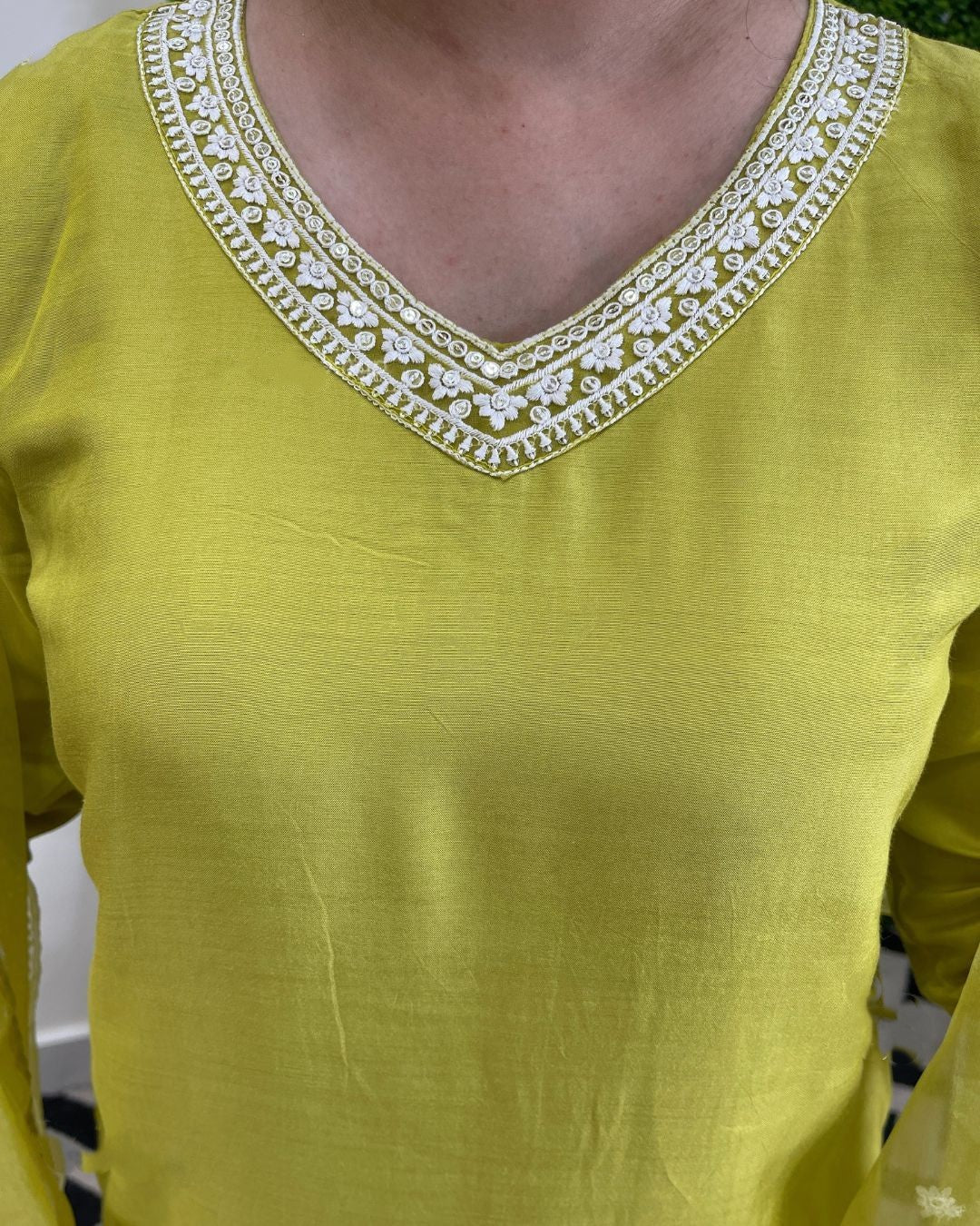 Step into timeless elegance with this vibrant green kurti set, featuring intricate mirror work and a stunning bandhani dupatta